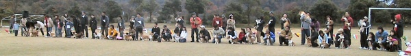 どこまでも待っています マテをさせて飼い主が少しづつ離れ行きます。皆結構上手でした |