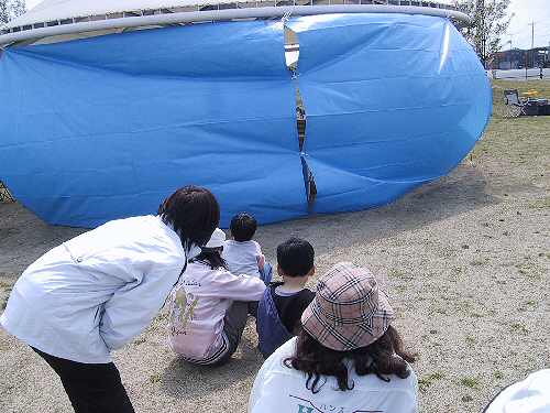 この子はだーれ シートの隙間を覗き込んでいます 見世物小屋のようですが、 隙間からチラッと見える姿から名前を当てるんです 自分の犬が分からなっかったオーナーが何人かいました反省 |
