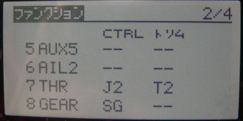 |  | ファンクションの切り替えで7と8チャンネルにスロットルとギヤを割り当てます。3チャンネルは空きになります。 |