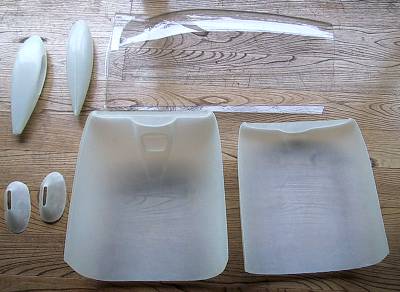上写真手前の箱の中身 キャノピー 394g カウル ペアで 438g スパッツ ペアで 118g ギヤパンツ ペアで 16g カウルは上下のかみ合わせは良くてそのまま使えそうです 他に別途頼んだマフラーの本体が入っていました↓ |