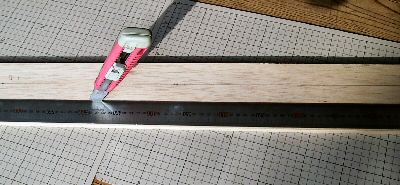|  | F 9.5*101.6*1219.2 のバルサ材から大きめに前後縁材を切り出します。 |
