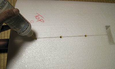 |  | B プロボンドを使って本接着です。ソケットにたっぷり塗って、さらに私はスチロールコアにドリルで穴を開けてそこからボンドを流し込みソケットを回しながらスチロールコアの穴全体にプロボンドが行き渡るようにしました。ウイングソケットは翼根リブが付くためスチロールコアから6mm以上は出ていることが必要。(ここではリブの接着はしません) |