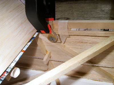 17 F−4,F−2,F−3 の順にエポキシで接着。補強のために全ての継ぎ手にエポキシでフィレットを作るか、9.5mm角のバルサ材を接着します。 |