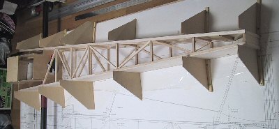 16 3.1*95.2*1219.2mm バルサ材をセメダインCで繋ぎ両面をサンディングします。木工ボンドでトラス材と接着します。 |