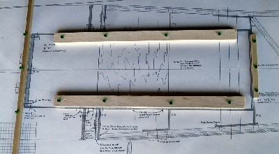 13 図面の上に組み立てのガイドとしてスクラップ材をピン止めします。 |