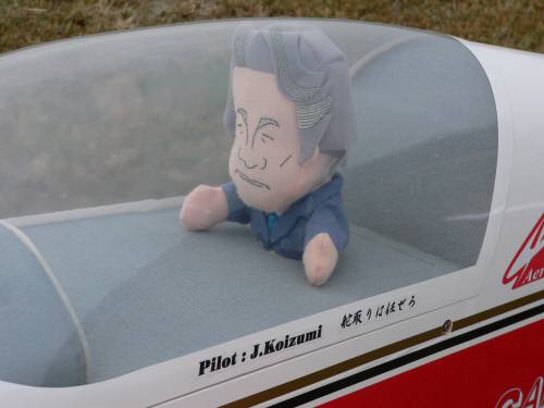 パイロットは小泉君、キットを買ったころは全盛期で子供がUFOキャッチャーで取ってきてくれました。くしくも初飛行の2006年10月を前に引退し余生はエクストラパイロットです。キャッチフレーズは“舵取りは任せろ” |