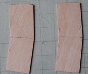 図面を元に尾翼の材料を切り出します。3mmのミディアムバルサが有ったのでこれを使いました。縦目はカッターで横目は鋸で切ります。しかし平面に対して切り口を直角にするのは至難の業です。最終的にサンディングで整えます。 ☆☆☆☆ |
