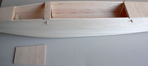 上下のバルサを貼ります。胴体は1.5mmバルサですが、上部前方は3mmを使いハッチとなるようにしています。主翼止めのタケヒゴを付けて生地完成です。 ☆☆ |