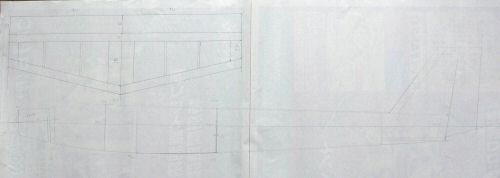 裏の白い広告を二枚つなぎ合わせて胴体と尾翼の図面を書きました。75%なら側板は最大69mm幅なので1枚物から切り出せます。 ☆☆ |