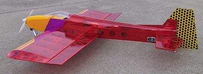 | 全長 1575mm 全幅 1470mm 主翼面積 66du メーカーデーター 全備重量 2,280g 翼面加重 34.5g/du 私のデ−ター エンジン YS−53 ペラ MK 12*5 サーボ エルロン 9001*2 エレベーター 9001*2 ラダー 9151 エンコン 9601 送信機 フタバ FF9 受信機 149DP バッテリー NR−4J 製作はキットどうりです、フライト感覚はラジコン技術誌のインプレそのままですが 非常に軽くてフワフワ良く浮きますのでエンコンの使い方しだいか? 最後に重要なデーターを オラカバのクリヤーレッド 0.58g/du オラカバの蛍光オレンジ 1.02g/du オラカバの水玉模様 1.01g/du 以上は今回の実測値で1g単位のデジタル秤で生地完時とフイルム張り後の差を面積で割って求めた値です アクロSPの表面積が主翼の4倍あるとして250du フイルムを全て重いタイプのもで張った時と、軽いタイプで張ったときの違いは 100g近くになります |