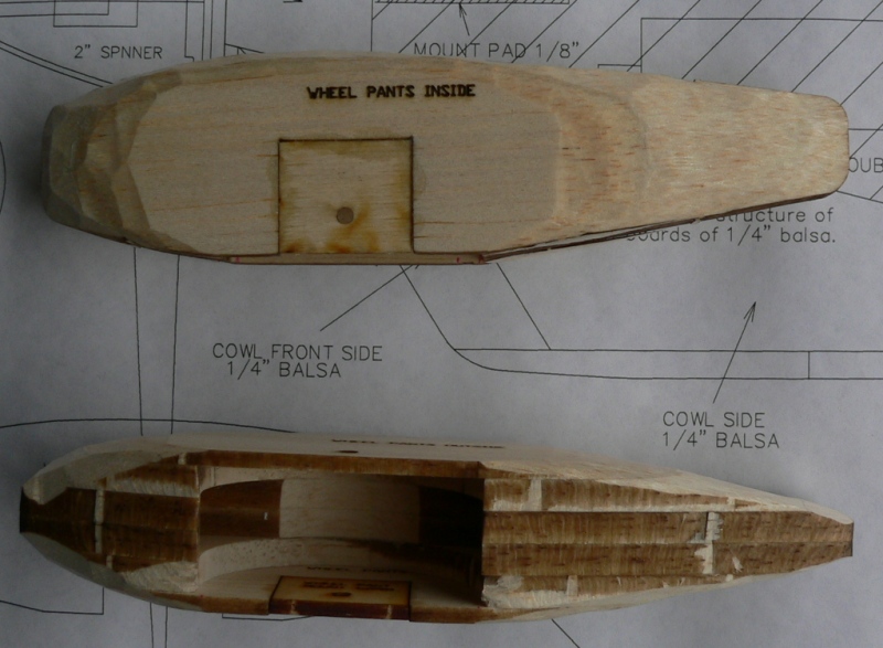 ノーズ上部のブロック材ですがモーターマウントが大きいので当たってしまう部分をカットしています。 |