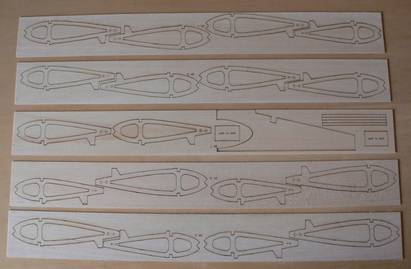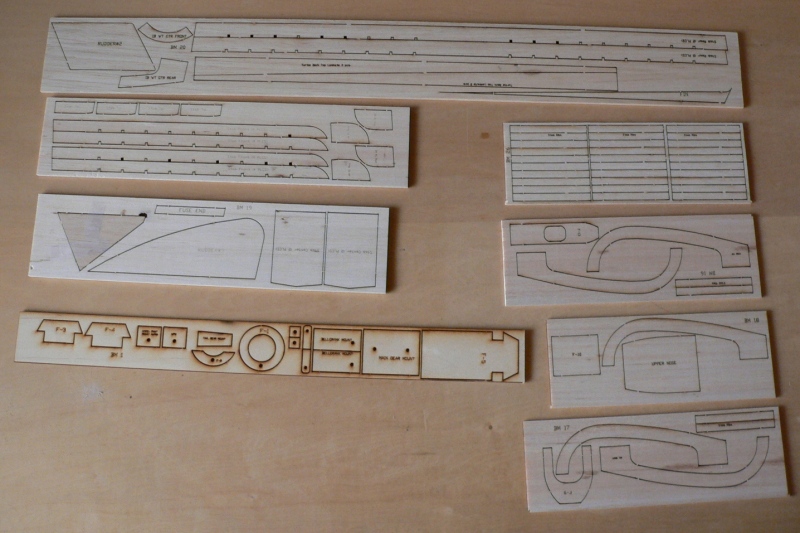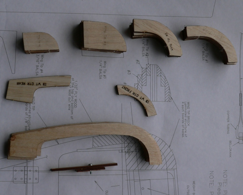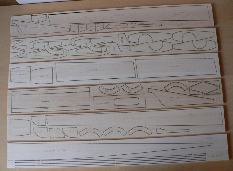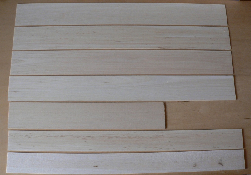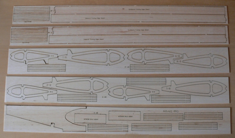 水平安定板や翼端材など 左下は3mmのベニヤ製です。 |