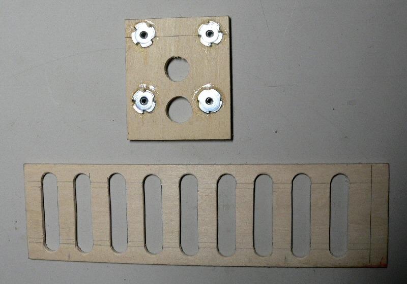 脚の取りつけ部分は爪付きナットを使いましたが厚さが足らないので2枚重ねにしました。 |