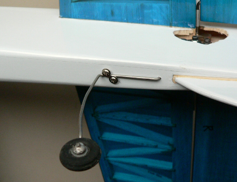 尾輪は後方をL字に曲げてを穴に差し込んで前側をビスで押さえるだけ。フイルムを張るのに邪魔になるので後付けにしたかったんですが、、、 初飛行で10回ぐらい着陸をすると穴にガタが出て左右にぶれが出てきました。どうしよう? |