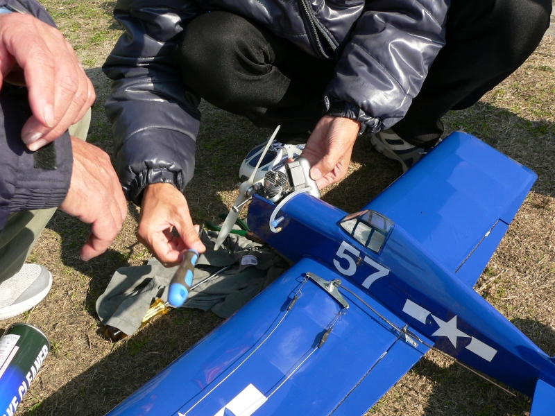 Mさんのグラマンのエンジンはエンヤ15V形とかでブレークインは1リットルしてきたそうです。