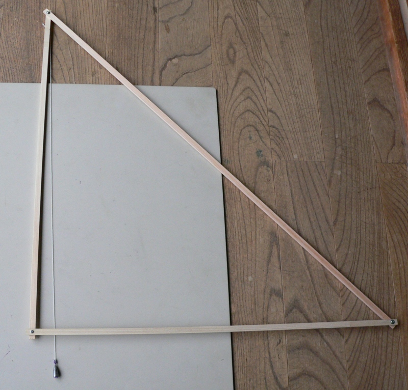 下げ振りで垂直を見て腕に沿わせれば45度ですが始めの数周で45度を確認後は演技の邪魔になるのでその辺に置いておきます。