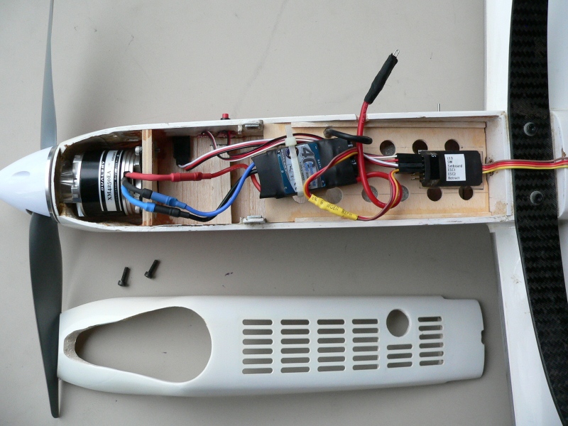 3枚ペラ用のスピンナーを持っていないので今回はこのような状態で飛ばしてみました。一番前方が13g軽くなっています。
