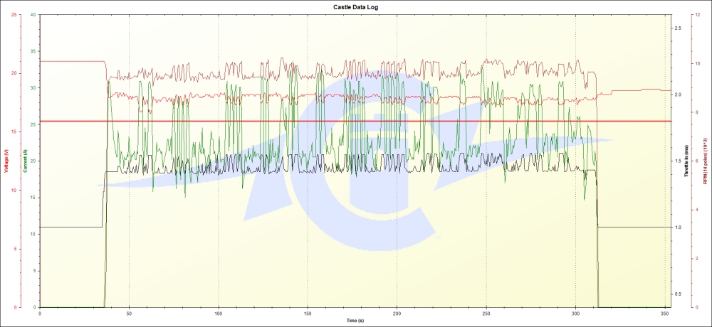 1フライト分で緑が電流、一番上の茶色が回転数です。