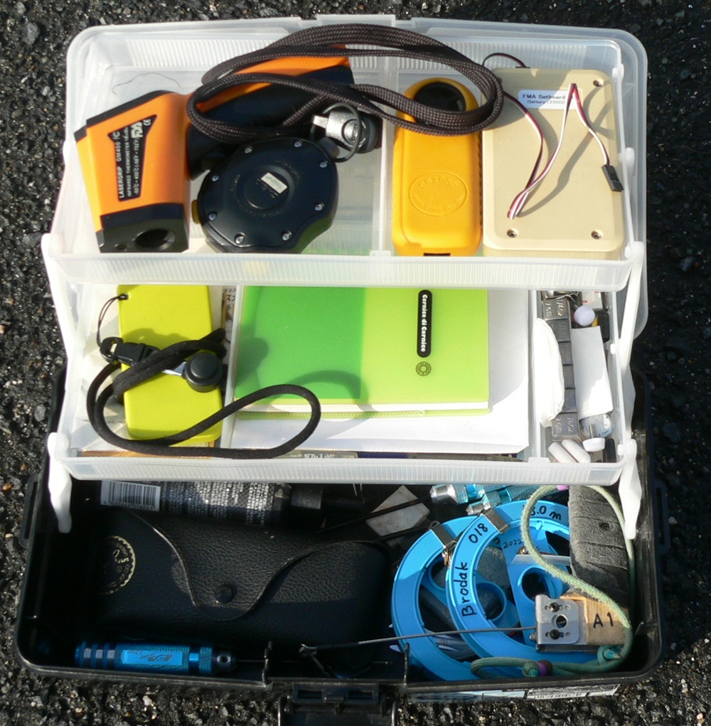 上の段からセットボード、風速計(ほぼ壊れている)ストップウォッチ、温度計