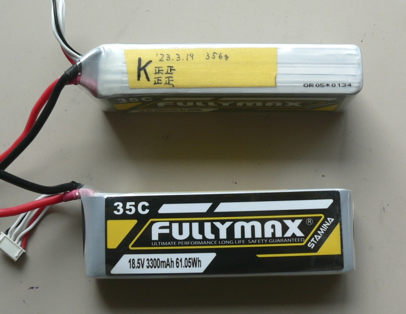 右の2本が新規導入のフーリーマックス スタミナ 5セル3300mAです、その性能はいかがなものでしょうか?