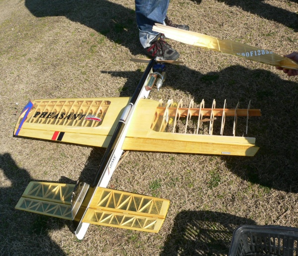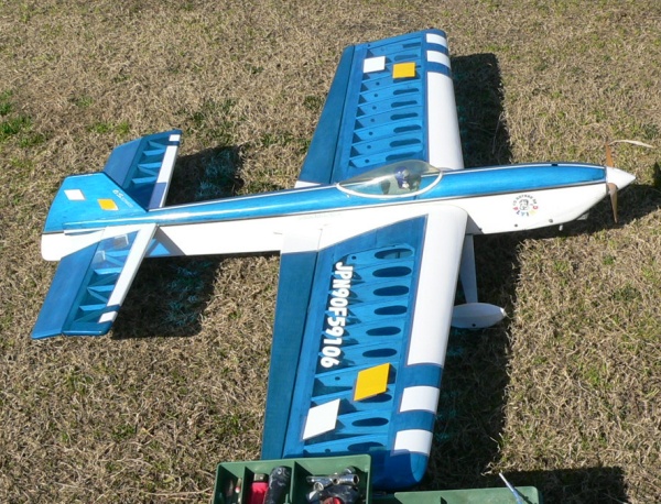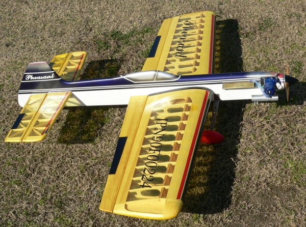 私のフェザント45です。46以下の規定では電動はバッテリー込みで1400g以下なのでホイルパンツもスピンナーもなしでぎりぎりです。私もハンディの見直しで1.5になったので今回は優勝できました。 |