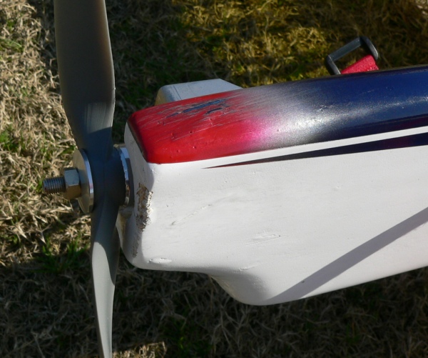 ノーズにちょっと傷が入り〜〜〜の、右翼端も少しすりむけました。しかし今までで1番上手な背面着陸だったので最小限の被害で済みました。あ〜〜〜でも残念。 |