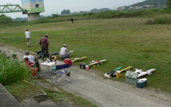 朝の掛は場内の草刈で皆さんそれなりにお疲れでした。綺麗になり飛ばしやすくなりました。 |