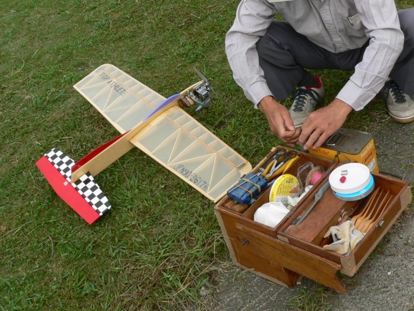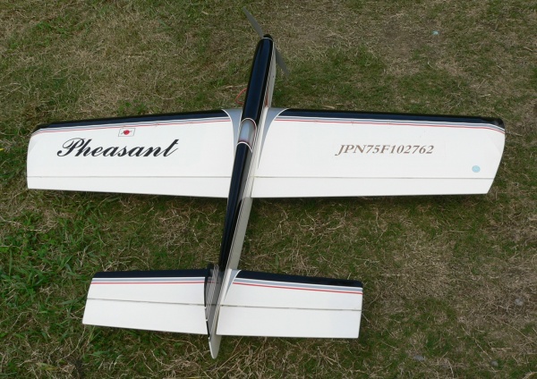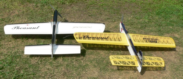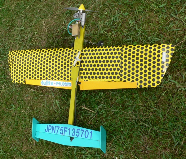 こちらは山口県のY田さんのフェザント45クラスの箱胴タイプで2012年選手権のシールが貼ってありました。私も飛ばさせてもらいましたが自分の機体と違和感なく飛ばせました。 |