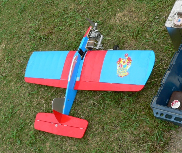 私の機体は自作のスタントマシンにエンジンはブローダック15.25クラスの機体を持っていないし曲技をするならこの機体しかないしでも速度は遅いんです。1年以上は飛ばしていませんでしたがエンジンは快調でした。 |