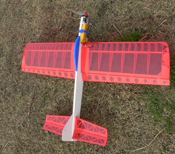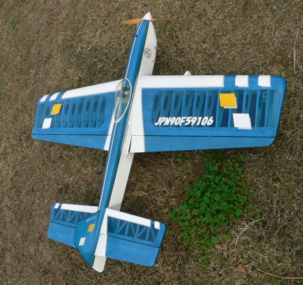 軽量化にこだわってフラップに穴を開けたり水平版を組み立て式にしたためいまいち剛性が無いとの評価でした。パワーは有りテンションは問題無いので少し重くなっても良いのでしっかりした物に変えたほうがよいとのアドバイスを頂きました。 |