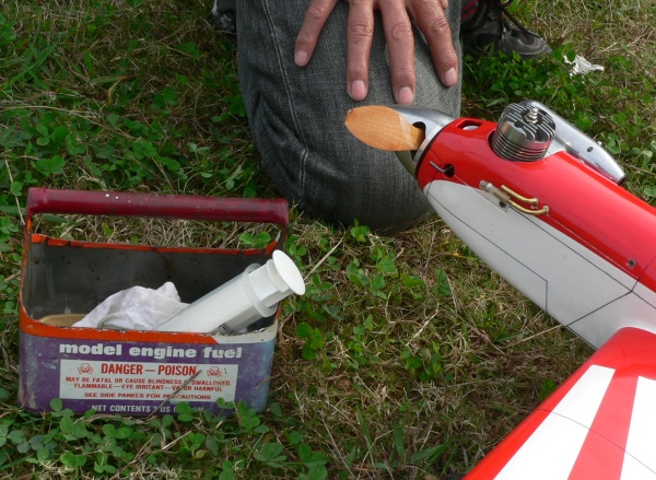 エンジンもその頃の年代物。K&Bの燃料缶で作った小物入れも年季を感じます。 |