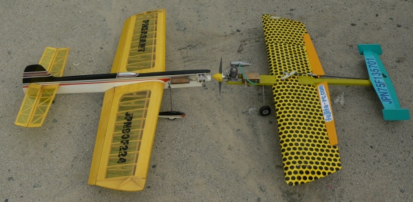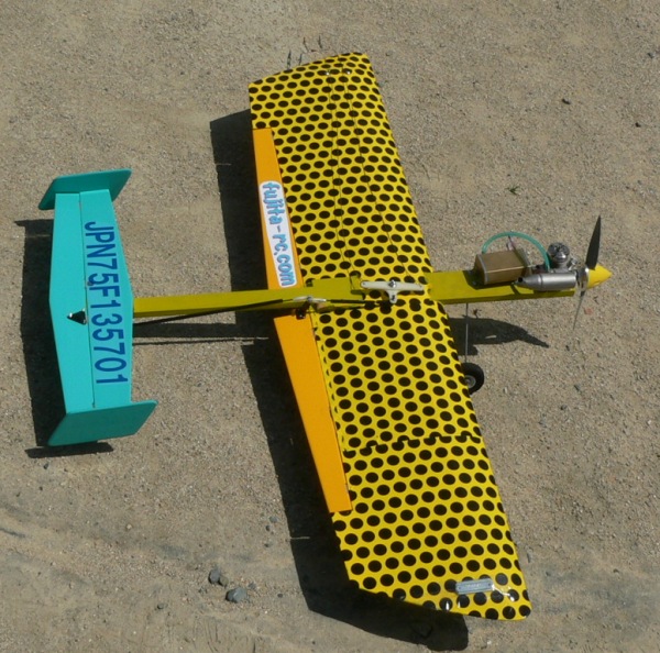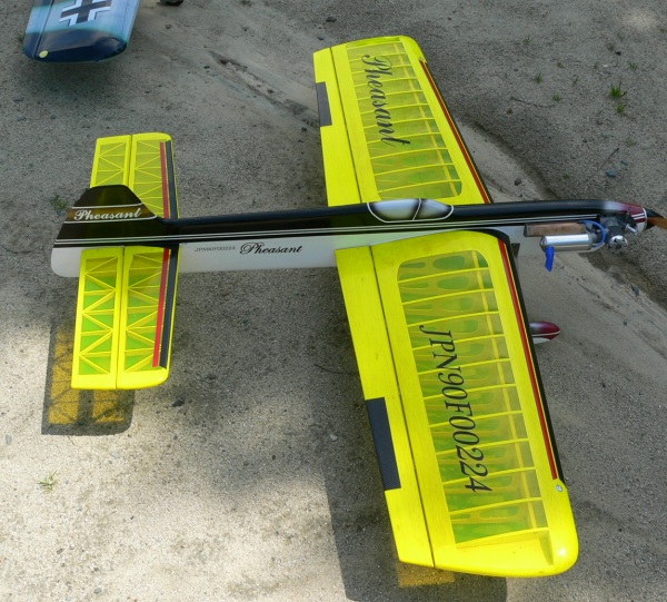 そしてもう1機はフェザント45のプロフィールタイプでこちらは新造して頂きました。周りからは45クラスで練習すんならF2Bなんかすぐにできるようになるばいと言われました。電動で3Gタイマーのノンガバナー仕様で飛ばしたいと思います。 |