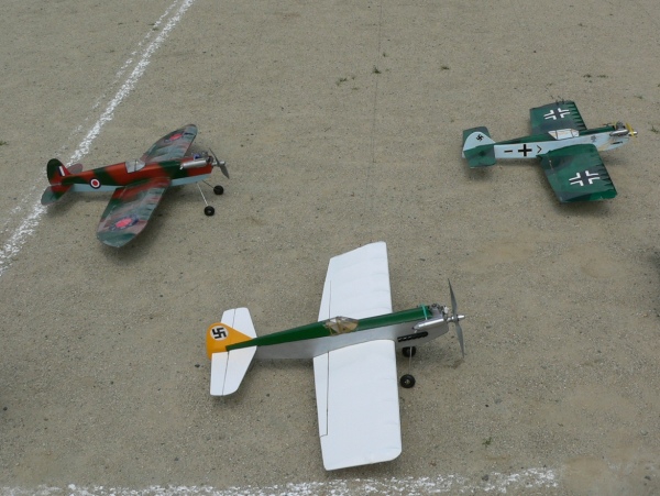 N田さんがスクラッチで作り上げたサイトー4サイクルエンジン搭載の、これはメッサーシュミット? スケール機に4サイクルエンジンと仕上げ感がいいですね。 |