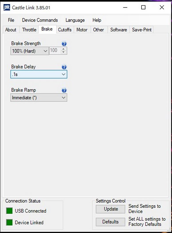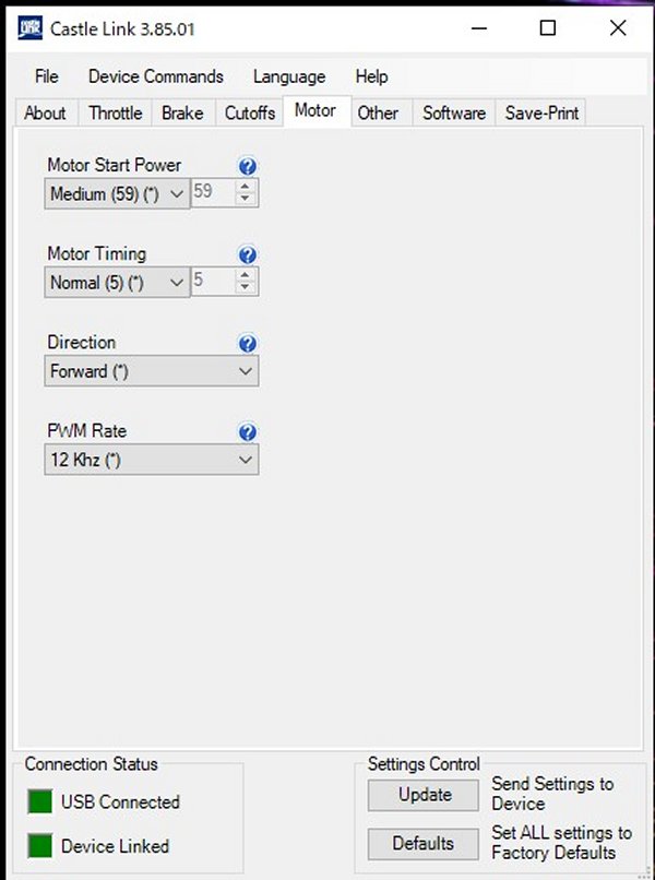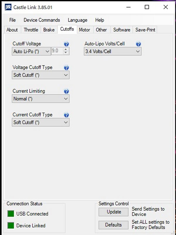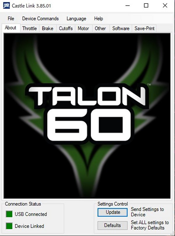 キャッスルリンクでパソコンとESCを繋ぎソフトを立ち上げるとESCの種別が表示されます