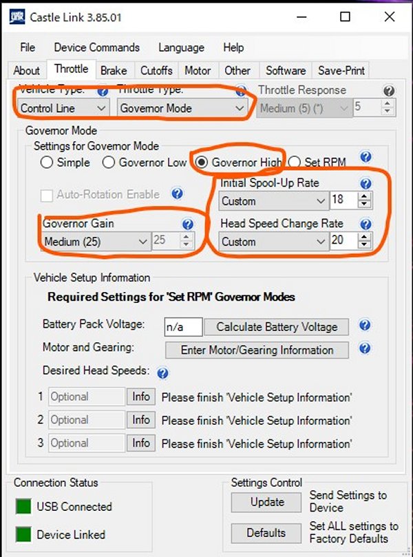 ガバナーはハイ、ゲインはミディアム、その他は適当に入力。