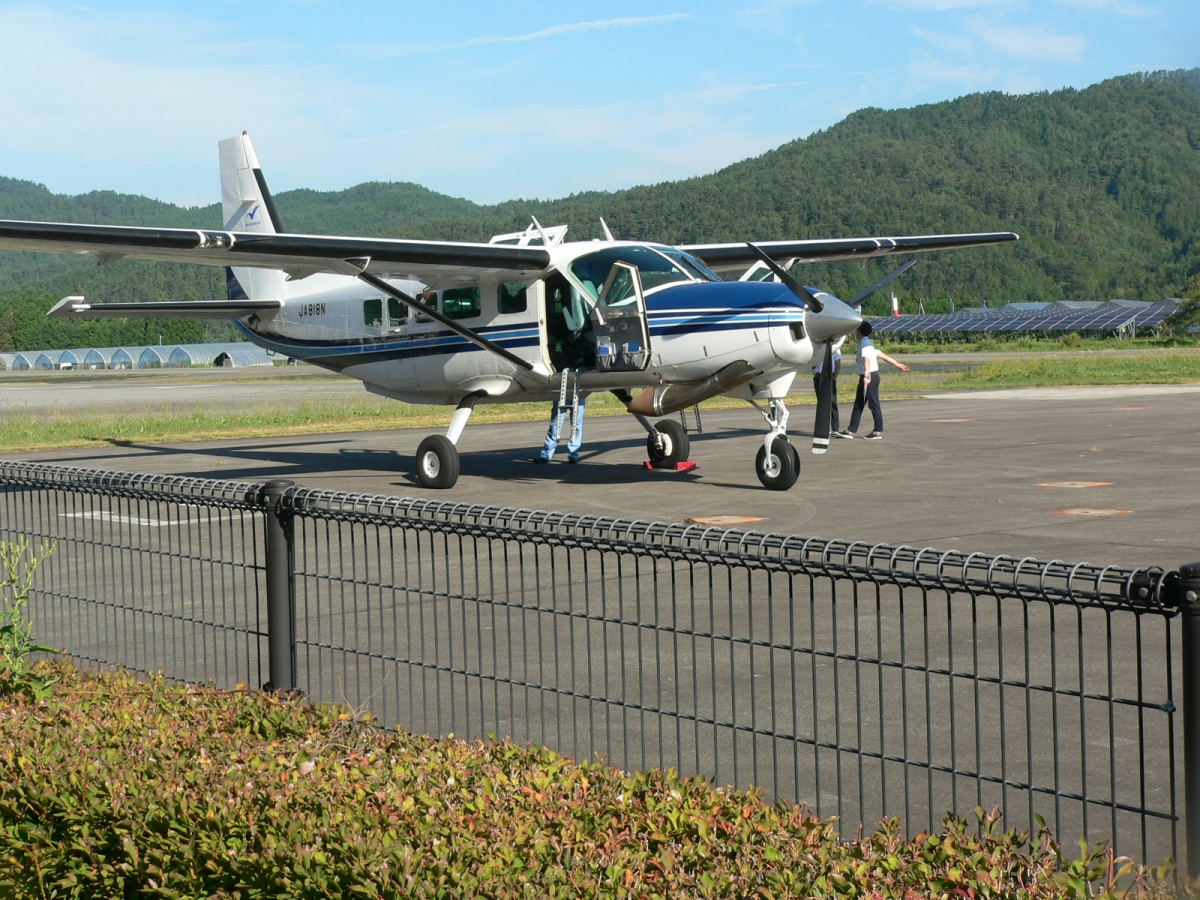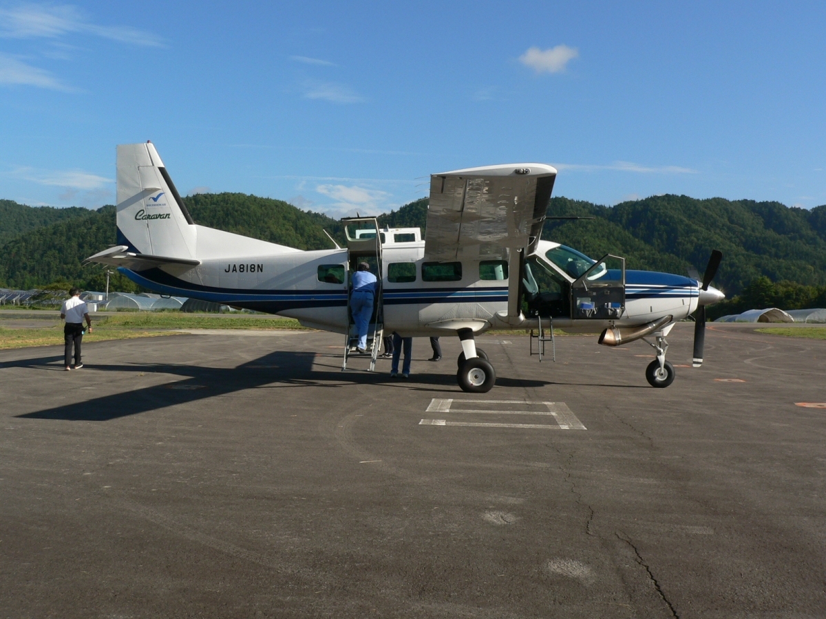 セスナ208と言う機種だそうですがチャーターしたら一時間40万円ほどではないかとの話でした。