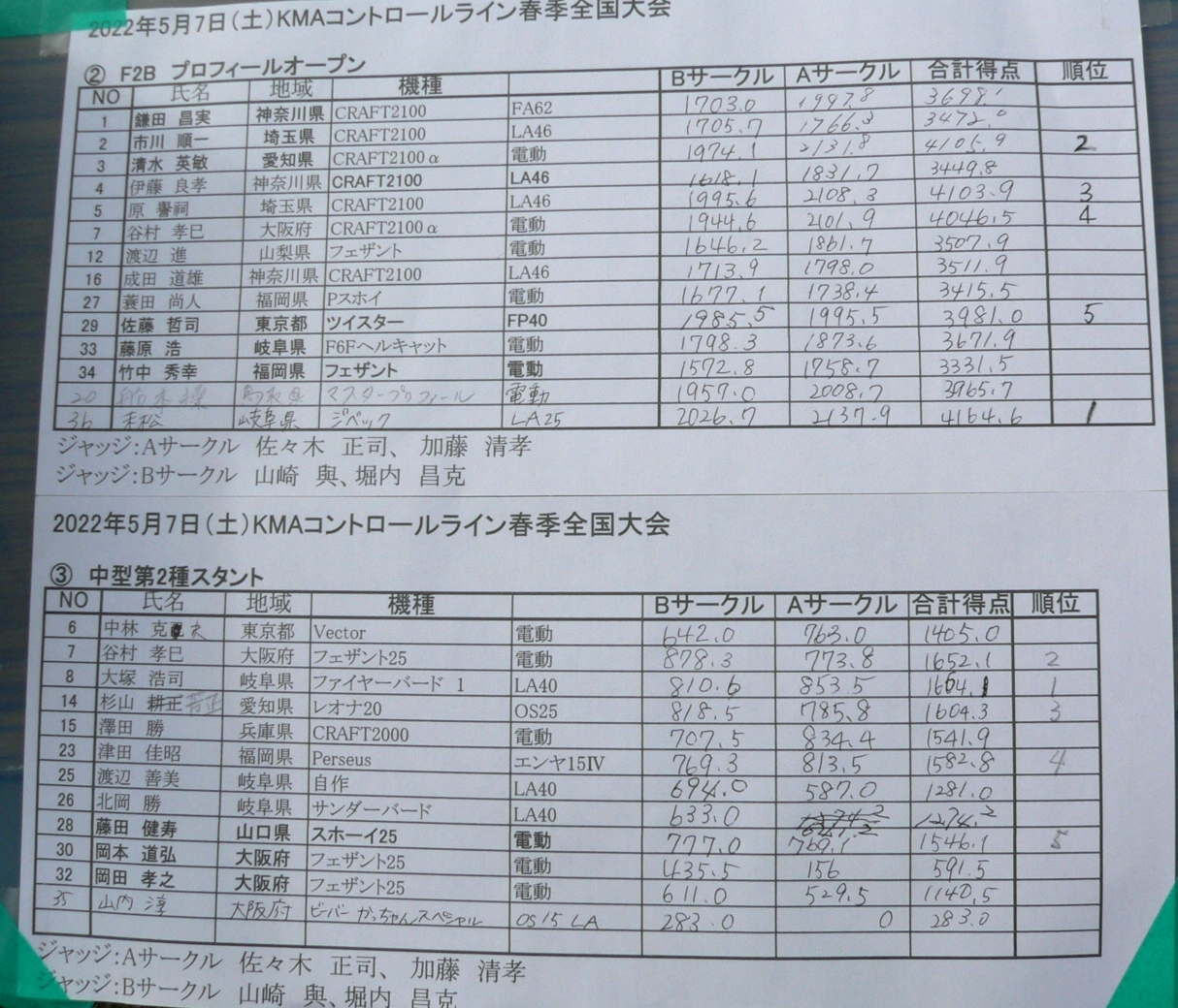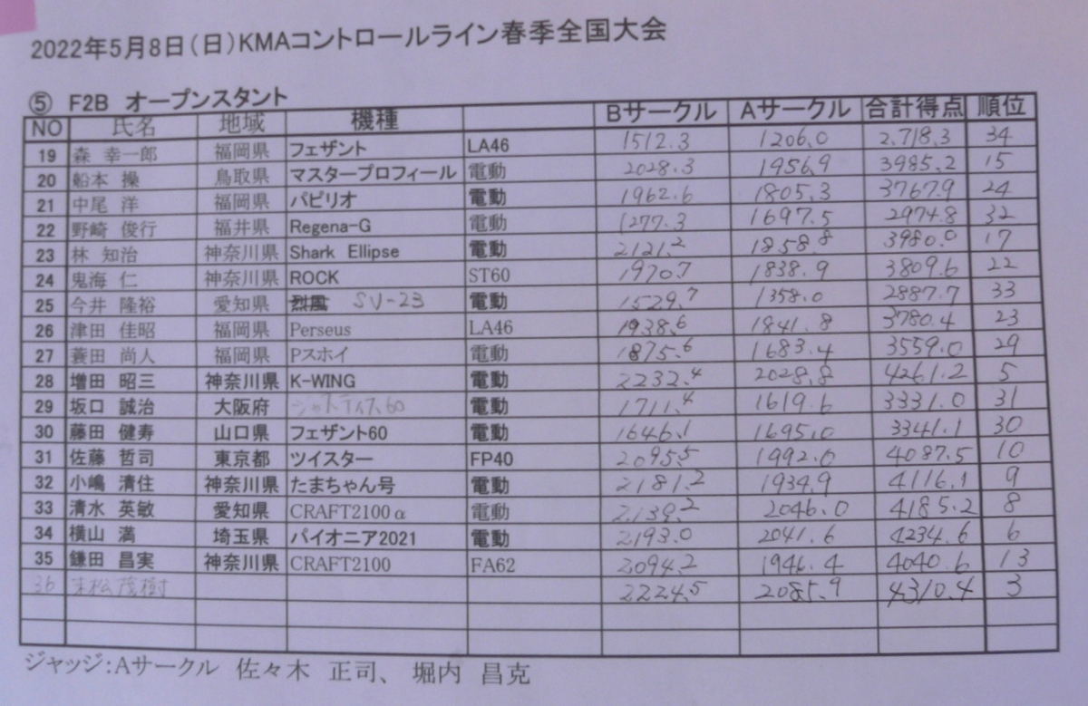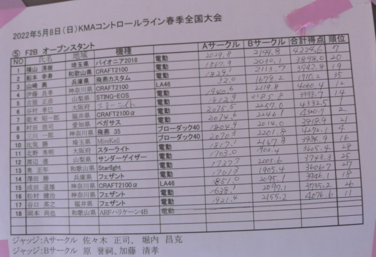 2022KMAコントロールライン競技春季全国大会 2022年5月7,8日