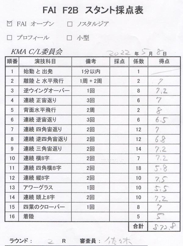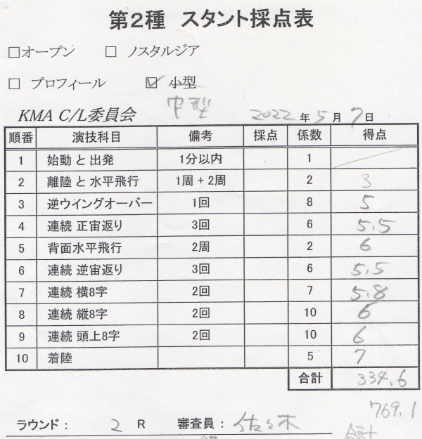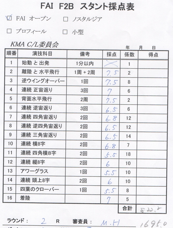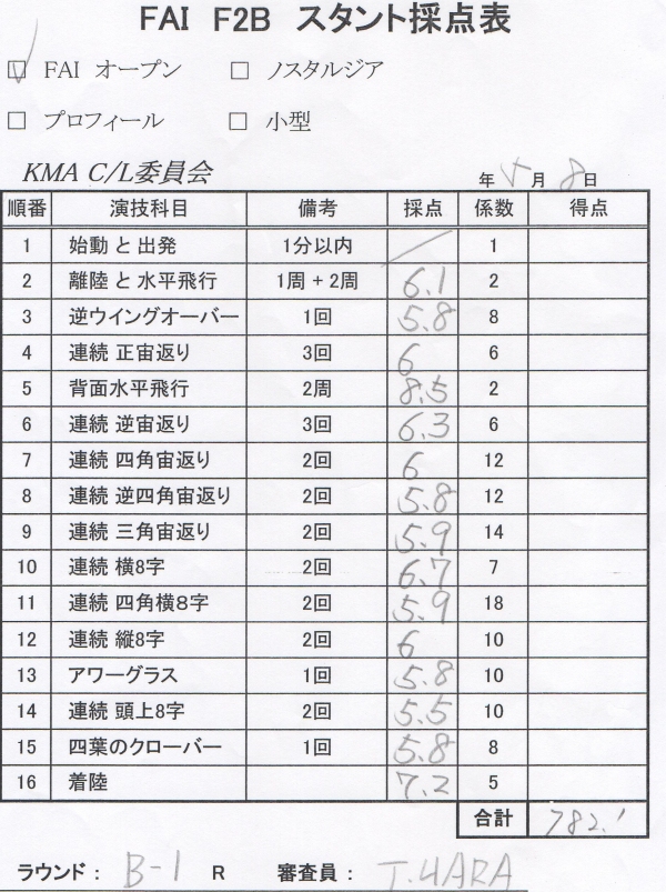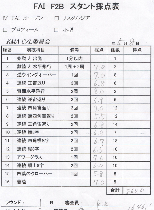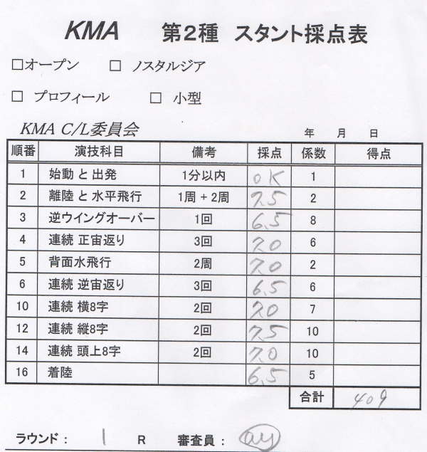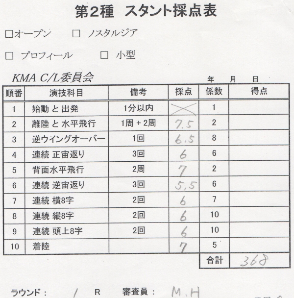 ラジコンからUコンに転向される人が結構あるそうでこれかやってみようかと思う方に参考になればとっジャッジペーパーを公表します。(備忘録を兼ねます)