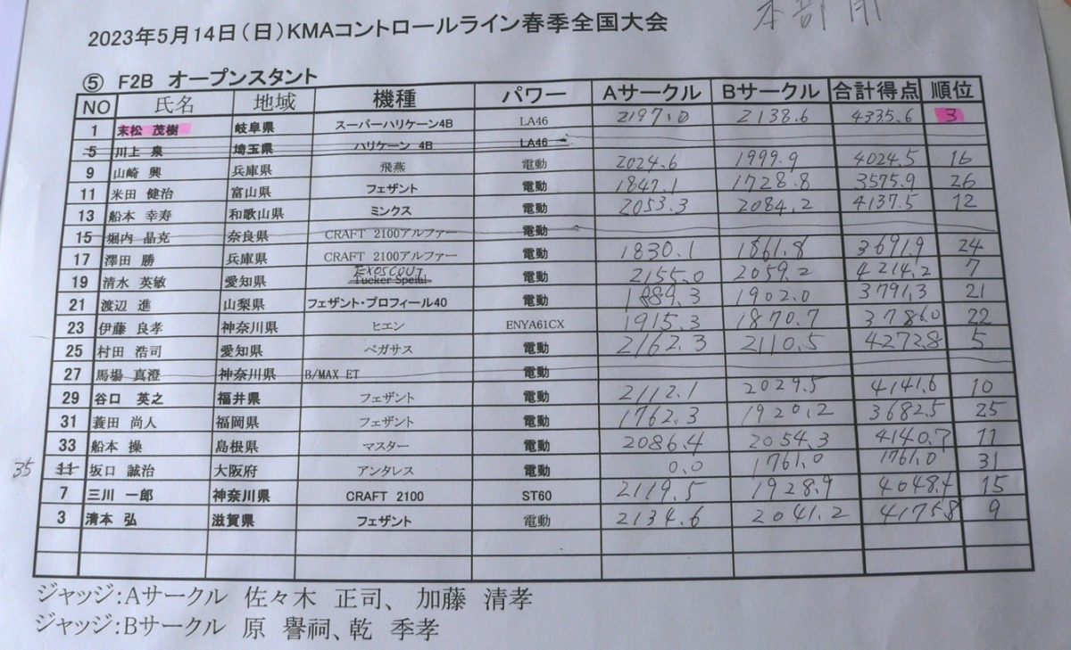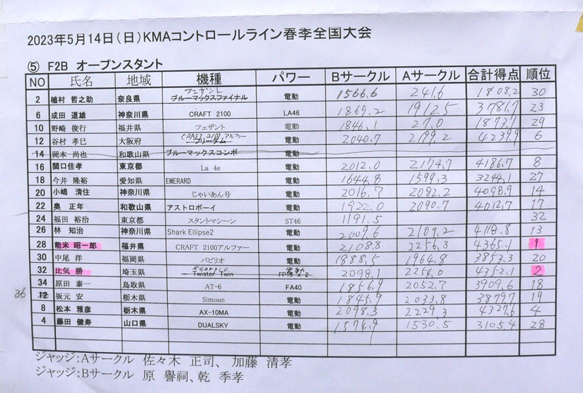 2023KMAコントロールライン春季全国大会 2023年5月13,14日
