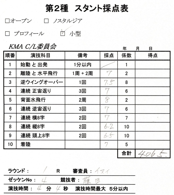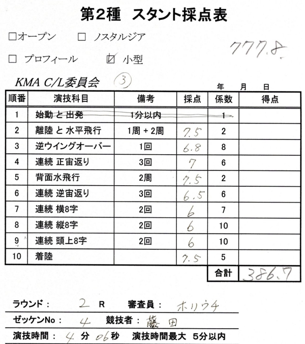 さて自分はと言いますと中型2種に向けてスホーイ25を1年ぶりに8フライトして臨んだのですが去年とほぼ同じ点数と順位でした。