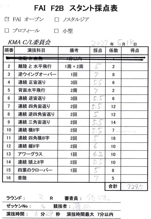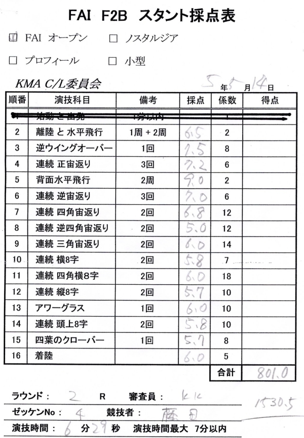 F2Bで連続宙返りで8点、背面水平で9点が付いたのが少しは進化している兆しか?