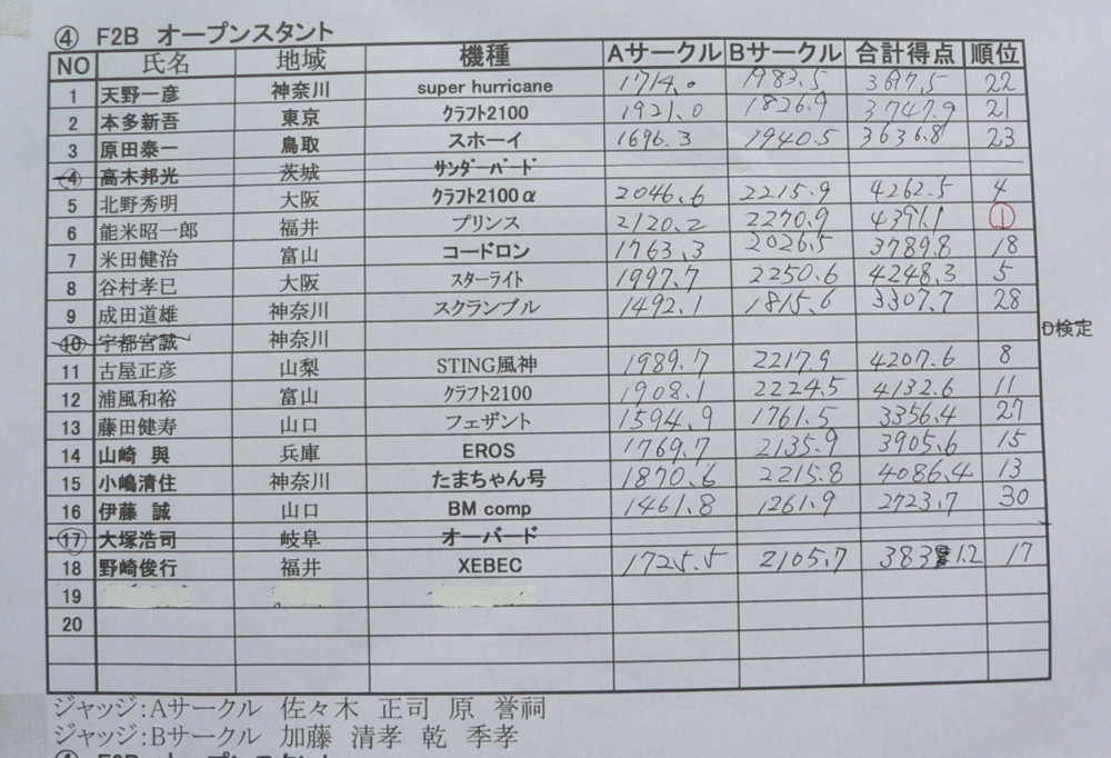 結果発表です 選手権の決勝フライトの常連さんはさすがに強いです