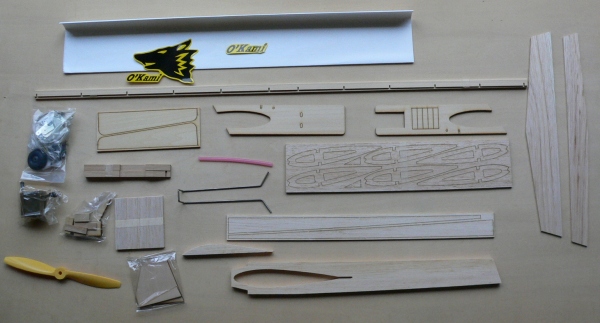 キットの内容です。タンク、プロペラ、シリコンチューブ、翼紙などほとんどのものが入っています。 |