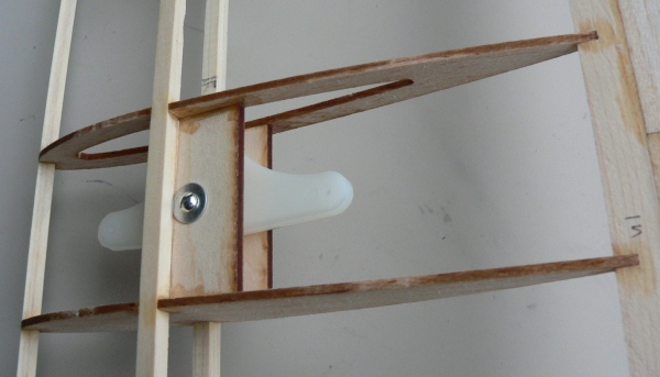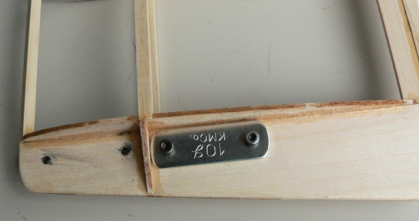 図面では翼端板の前のほうに付ける様になっていますが、ビスやナットが表面からはみ出してしまうので後ろよりに付け直しました。 |