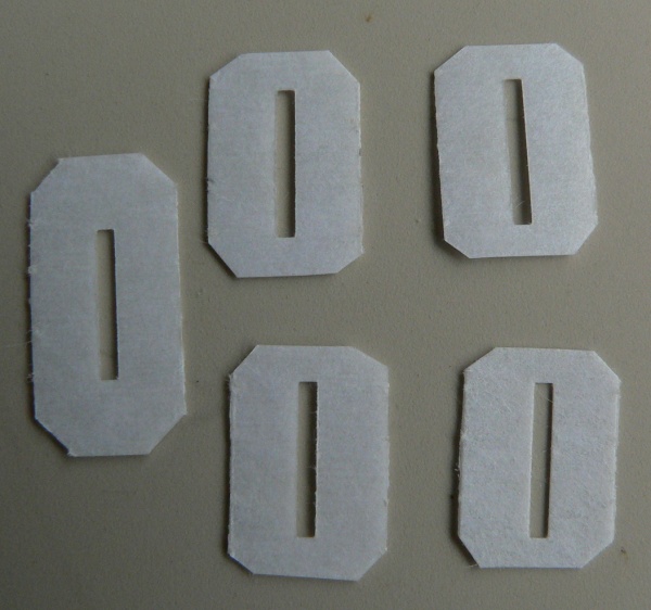主尾翼はフイルム張りにするので布テープのヒンジは使えません。OK模型のイージーヒンジSを使いますが、尾翼の厚さが3mmしかない上に固めのバルサなので取り付けが大変そうです。上下を3mmづつ切って小さくしました、これを4枚使います。(左端のがノーマルの大きさ) |