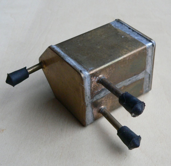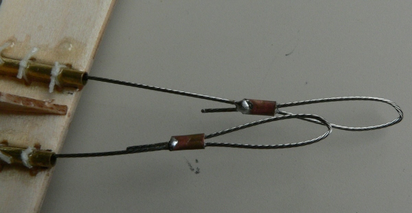 リードアウトワイヤーにワッカを作ります。真鍮パイプをかしめた後に半田付けします。ステン用のフラックスを使うと綺麗に流れます。錆びないようにしっかり水洗いをして防錆剤を塗っておきました。 |