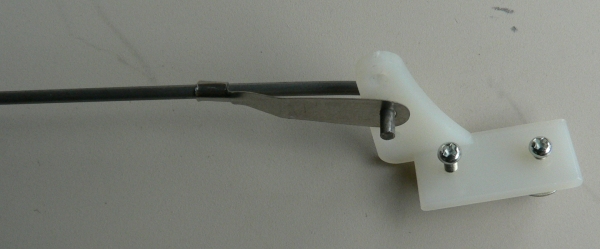 リンケージは拘ってラジコン用のパーツを使い後からでも調節できるようにしました。ロッドは針金で巻いて半田付けしてあります。最後に10gの錘をつけると重心位置もいい感じです。重心位置についてはラジコンよりかなり前目の設定になっているのは不思議な気がします。 |