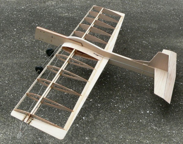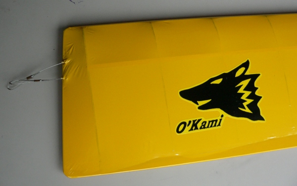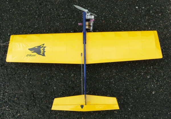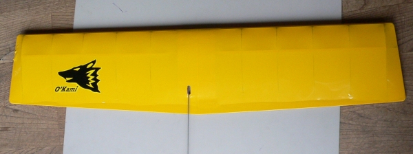 やはり翼端はしわになりました。そしてワイヤーの出口もなんとなくしっくり来ませんが上手な人はどうやっているのか機会があれば見てみたいです。後縁のフラップの部分はやはりフイルムの引っ張りで浮いてしまいました。Uコン機のフイルム張りはそれなりの技がいるようです。 オオカミのステッカーが黄色のフイルムには合っているな。 |