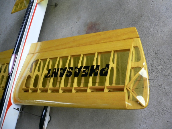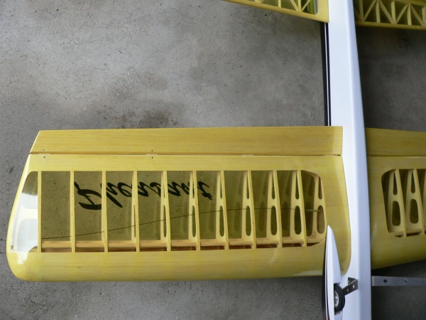 水平尾翼は組み立て式。手間がかかりますが軽量化に重点が置かれているようです。厚さは測ってみると5.2mmありました。 |