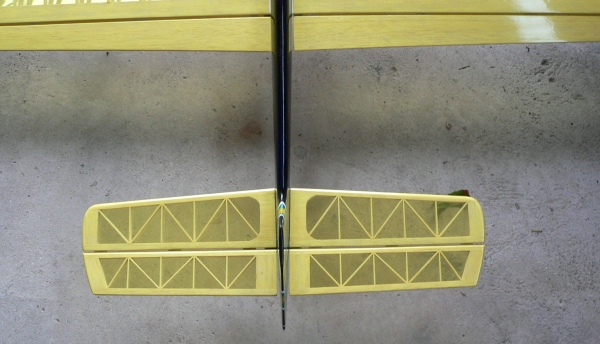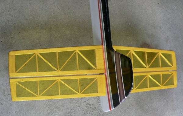 電動なのでラダーのオフセットは無し。水平尾翼の厚さは約10mm。 |